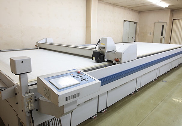 CADで描かれた図、文字等の全てを描画でき、主に鋼板の穴明け位置や、組立て合せ位置などの情報を半透明のフィルム(型紙)に描き裁断しています。