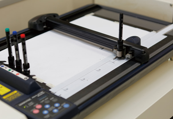 大規模構造物を作る時にかかせない「シナイ定規」を自動で出力する装置です。